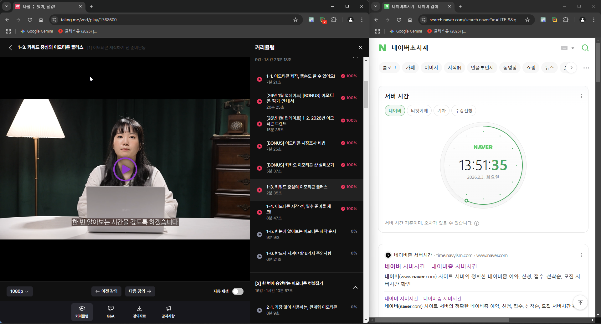 오늘 강의 분량도 시간이 긴 편이 아니어서 부담 없이 강의를 듣고 이모티콘 출시에 대한 동기부여를 받을 수 있었던 것 같아요. 탈잉 김나무 이모티콘 챌린지를 참여하면서 강의만 간단히 듣는 것보다 시간은 3~4배 더 걸리게 되는 것 같지만, 그래도 2배속으로 들으면서 내용을 제대로 숙지하지 못하고 넘어가지 않고 꼼꼼히 내용을 다시 소화해보게 되는 것 같아서 좋은 것 같아요.